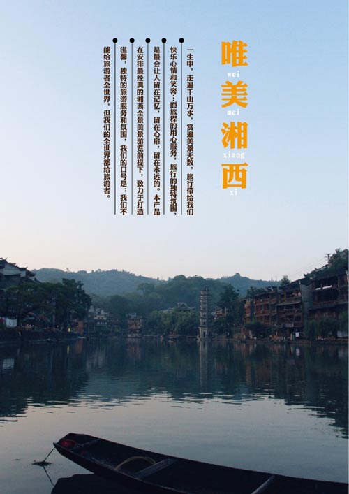 14:00:前往鳳凰(全程張花高速)—湘西天路,途觀世界奇觀,被譽為亞洲第一懸索橋的——矮寨特大懸索橋。晚上客人可根據自己的興趣愛好欣賞鳳凰沱江迷人的夜景,體驗那喧鬧而不失浪漫之情調。
